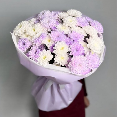 Букет из 9 фиолетовых и белых хризантем